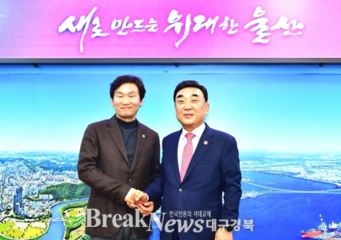 【브레이크뉴스 경산】이성현 기자=조현일 경산시장은 17일 김두겸 울산시장을 만나 ‘경산~울산 간 고속도로 건설’ 사업의 조기 확정을 위한 공동 대응에 뜻을 모았다.