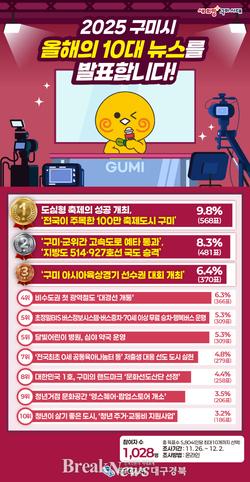 Gumi City announced on the 3rd that it conducted a survey titled "Top 10 News Stories of the Year 2025" to gauge citizens' perceptions of the overall city administration implemented throughout 2025 and to reflect these changes in the city's operational direction for next year.