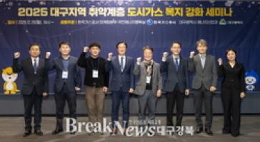 【브레이크뉴스 대구】이성현 기자=한국가스공사(사장 최연혜)는 29일 대구 수성구 호텔수성 컨벤션홀에서 대구광역시 에너지산업과와 공동으로 ‘대구시 취약계층 도시가스 복지 강화 세미나’를 개최했다.