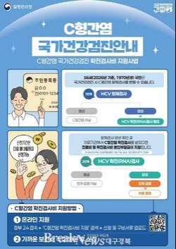 아울러 2025년 국가건강검진에서 C형간염 항체 양성 판정을 받고 확진검사를 받았으나, 검사비를 신청하지 않았거나 종합병원급 이상 의료기관에서 검사를 받아 지원 대상에서 제외됐던 56세 군민(2025년 기준, 1969년생)에 대해서도 2026년 3월 31일까지 신청 시 소급 지급할 예정이다.