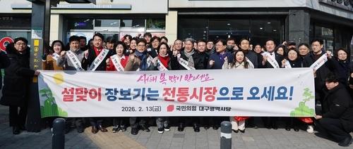 The Daegu City Chapter of the People Power Party visited traditional markets ahead of the Lunar New Year holiday to encourage merchants.