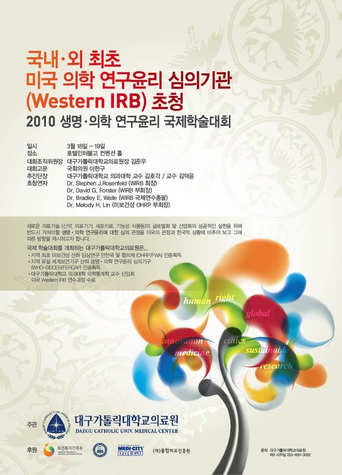 대구가톨릭대학의료원 국제의학 학술대회 개최2010 생명과 의학 연구윤리(IRB) 국제학술대회 오는 18일과 19일 양일간