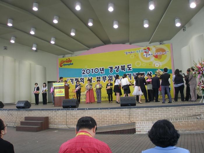 지난 26일 안동 국제 탈춤공연장에서 개최된 ‘2010 가정의 날 및 부부의 날 기념행사’에서 건강한 가정 육성 및 평등한 부부문화 확산에 공이 큰 도민에게 수여하는 가정의 날 유공부문에 영천시에서는 조성옥(54 여 금호읍), 부부의 날 다문화부부상 유공부문에는 문외동에 거주하는 오기옥(50), 판티배녹(27 여)씨 부부가 표창을 받았다.