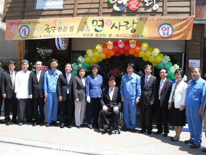 경상북도사회복지공동모금회(회장 최덕수)는 포스코와 함께 노인일자리창출 사업의 일환으로 3천 5백만원의 예산을 ‘좋은이웃 노인복지센터’에 지원하고 9일 조봉래 포스코 포항제철소장, 방성수 경상북도사회복지공동모금회 사무처장 및 사업 관계자들이 참석한 가운데 포항시 북구 창포동에 위치하고 있는 국수집 ‘면사랑’에서 창업식을 가졌다. 노인일자리창출지원사업은 저소득 노인을 대상으로 직업을 통한 자활과 전문기술 교육을 통한 창업 지원으로 일자리 창출을 통한 노인들의 자립을 돕고자 진행하는 사업으로 창업을 위한 인테리어 및 집기비용과 함께 참여 노인대상 창업관련 교육비까지 지원하고 있다. 좋은이웃노인복지센터가 경상북도사회복지공동모금회의 지원을 받아 운영하는 '면사랑'은 저소득 노인들이 직접 국수를 만들어 일반인들을 대상으로 판매하는 국수전문점으로 노인들이 직업기술을 향상시켜 창업 및 자활을 돕는 교육장소의 의미도 함께 가지고 있다. 경상북도사회복지공동모금회 관계자는 “노인들을 대상으로 일자리를 창출, 스스로 경제적 자립할 수 있는 좋은 기회가 될 것이며, 지역 독거노인, 노숙자들을 대상으로 무료급식사업도 정기적으로 진행하여 지역복지 발전에도 크게 이바지할 것으로 기대된다”면서 "앞으로도 노인대상 단순 시혜성 지원보다 장기적으로 건강한 노후, 일하는 노후를 위한 다양한 사업을 기획하여 진행하겠다" 고 말했다.