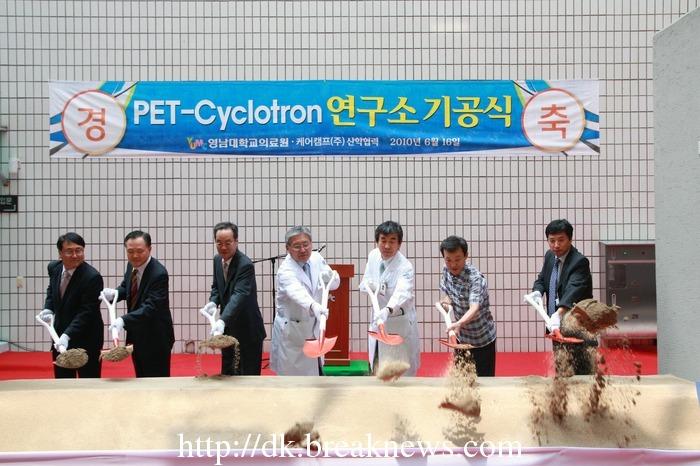한 번 검사로 암(癌)을 정확히 잡아낼 수 있는 최첨단 암 영상기기인 PET-CT에 필수적으로 이용되는 양전자 방출 방사성 의약품을 생산, 공급하는 사이클로트론 제2센터가 16일 병원 경영진과 관계자들이 참석한 가운데 영남대학교병원내에서 기공식을 가졌다.