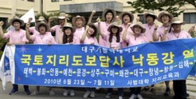 대구가톨릭대학교(총장 소병욱) 지리교육과 학생들이 ‘4대강 사업’으로 논란이 끊이지 않는 낙동강 도보답사에 나서 주목이 되고 있다. 대구가톨릭대 지리교육과 국토도보지리답사단 학생 17명은 23일부터 다음달 11일까지(18박19일) 낙동강 발원지인 강원도 태백 황지연못에서부터 강 하류인 부산까지 낙동강변 480㎞를 따라 걸으며 다양한 지형변화와 인문환경적 변화를 직접 체험할 계획이다.