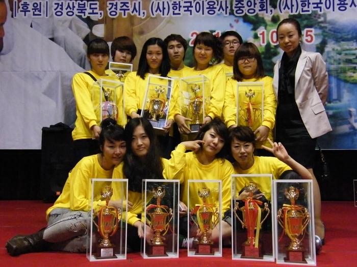 서라벌대학(총장 김재홍) 헤어미용복지과 학생들이 지난 1일 부산에서 열린 부산 시장배 미용페스티벌대회 공동 대상 수상에 이어 5일 서라벌대학 원석체육관에서 개최된 제 1회 경북도지사배 이용기능경기대회에서도 뛰어난 성적을 거두며 최고의 헤어디자이너 양성소임을 입증했다.