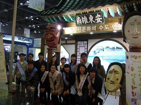 지난 11일부터 14일까지 4일간 경기도 고양시 일산 킨텍스홀에서 열린 2010경기국제관광박람회에서 안동홍보에 나선 안동시 실무수습직원들이 동남권 신국제공항 건설 서명에 나서 주위의 눈길을 끌었다. 이번 제8회 경기국제관광박람회에서 안동시는 참가 관람객들을 위한 가족단위 체험행사로 나만의 하회탈 만들어보기와 하회탈을 쓰고 사진찍어 보는 행사 등 다양한 관광홍보행사를 펼쳤다. <저작권자 ⓒ 브레이크뉴스 대구경북 무단전재 및 재배포 금지>