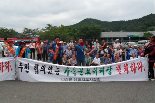 하지만 주민들은 돼지사육장 한군데도 없는 다산면에 가축분뇨처리장이 들어선다는 것은 다산면민 들을 우롱하는 처사라며 반대의 목소리를 높였다. 이날 김상만 다산면 이장협의회장은 “2007년부터 추진해 오면서 주민들에게 공원을 만들어 주겠다고 약속해놓고 이제 와서 가축분뇨처리장을 설치한다는 것은 있을 수 없고 일관성 없는 군 행정을 펼친다”고 질타했다.