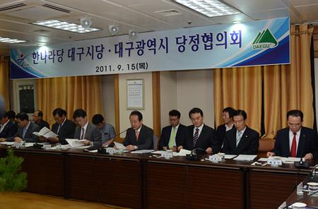 한나라당에서는 주성영 대구시당 위원장을 비롯해 유승민 최고위원, 박종근, 조원진, 배영식, 서상기, 홍사덕 의원이 참석했으며 박근혜, 이해봉, 이한구, 이명규 의원은 일정상의 이유로 불참했다. 대구시는 김범일 대구시장과 김연수 행정부시장을 비롯한 각 국`과장 및 실무자들이 대거 참석해 업무 현안보고를 한 뒤 예산확보와 원활한 사업추진 등에 대해 협조를 구했다. 비공개로 진행된 회의내용은 당정협의가 끝난 뒤 주성영 대구시당위원장과 대구시장이 공동으로 브리핑했다. 주 위원장은 “이번 당정협의는 역대 가장 우호적인 분위기 속에서 치러졌다”고 말해 당초 예산확보와 관련해 책임공방을 펼칠 것이란 예상을 뒤집었다. 지역 의원들 다수가 대구시가 명확한 사업계획과 주도면밀한 준비 없이 국회의원들에게 국비확보의 짐을 떠넘겨 왔다며 이에 대한 지적을 할 것이란 얘기가 있었으므로 이번 당정협의가 치열한 분위기가 될 것이란 전망이 있었지만 실상은 달랐다. 당정협의에서는 내년 예산의 경우 4대강사업이 종료되고 내년이 선거철인 만큼 예산확보가 어느 때보다 어려울 것으로 예상된 만큼 배영식 의원(중`남구)이 예결위 계수조정소위원회에서 철저하게 예산을 챙기기로 했으며 박종근 의원(달서갑)은 정규직과 비정규직 임금해소에 관한 대구시의 연구검토와 함께 일본기업 및 중국인 의료관광 확대를 위한 대구시의 노력을 촉구했다. 유승민 최고위원(동구을)은 동남권신공항건설 재추진과 관련해 “부산권의 관계 개선과 동의가 무엇보다 필요하다”고 말해 모든 의원들의 공감을 얻기도 했다. 또한 K-2 공군기지 이전과 관련해 ‘군용비행장 이전특별법’의 제정을 서두르고 이 법의 통과를 위해 대구시와 대구시민들의 깊은 관심을 촉구하는 한편 최근 논란이 되고 있는 군 기지 소음피해 소송 지연이자와 관련해서도 대구시의 적극적인 대처를 요구했다. 회의 분위기가 너무 좋은 탓인지 오찬 시간에는 고위 공무원들의 의원들에 대한 찬사가 이어졌다. 대구시 간부들은 연신 “당정협의가 너무너무 잘되었다”면서 “의원님들의 노고에 깊이 감사드린다”고 했으며 모 국장은 건배를 제의하며 “의원님들 모두 5선, 10선 하시길 기원드린다”고 말했다. 지역 정가에서는 이번 당정협의회가 이처럼 예상 밖의 우호적인 분위기가 조성된데 대해 의원들이 내년 총선을 의식한 탓이라고 진단하고 있다. 공천에 민감할 수밖에 없는 의원들이 대구의 여론을 중앙에 전달할 수 있는 대구시의 고위공직자들과 격을 지는 것을 꺼리기 때문이라는 것. 어찌됐던 대구시와 한나라당대구시당이 한입으로 ‘잘 되었다’는 당정협의회에 대해 지역 언론들은 알맹이가 빠졌다는 반응이고 대구시민들의 눈에도 화합으로 비춰질지 ‘짜고 치는 고스톱’으로 비춰질지 의문인 상황이다. <저작권자 ⓒ 브레이크뉴스 대구경북 무단전재 및 재배포 금지>