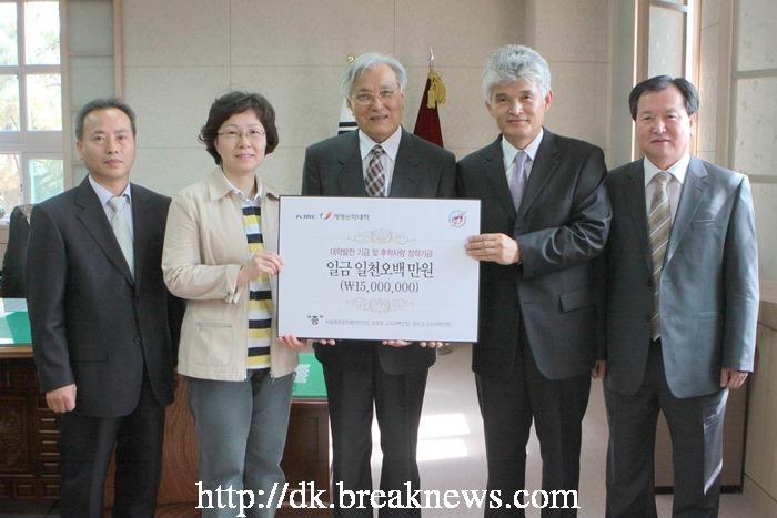 최근 계명문화대학(총장 김남석)에 후학사랑 장학금 기부가 줄을 잇고 있어 경기불황으로 경제적 어려움을 겪고 있는 학생들에게 큰 힘이 되고 있는 것으로 나타났다. 계명문화대학 비슬동문회 구본경 회장과 손완호, 윤희경 교수는 지난 14일 김남석 총장을 찾아 후학들을 위해 써 달라며 장학금 1천 5백만원을 전달했다.