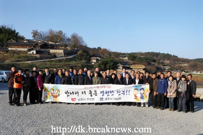 이들은 지난 2001년 자매결연을 시작으로 현재까지 상호 방문을 통한 교류를 이어오면서 탄탄한 우정을 과시하고 있다. 지난 25일에는 남원시 주천면 기관 단체장으로 구성된 방문단 40명이 경주시 내남면을 방문, 지역 행사 홍보와 특산물, 지역의 문화재 등을 돌아보며 우정을 나눴다. 내년에는 남원시 주천면에서 이들의 만남이 예정되어 있다. 전북 남원시 주천면은 전남 구례군과의 경계로 지역일부가 국립공원인 지리산 자락에 둘러싸인 환경이 뛰어난 청정지역으로 알려져 있다. <저작권자 ⓒ 브레이크뉴스 대구경북 무단전재 및 재배포 금지>