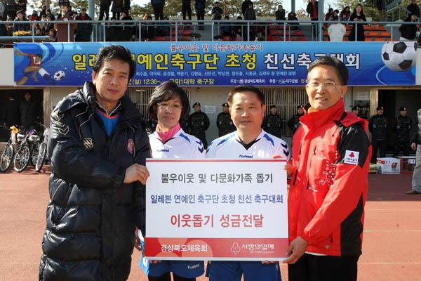 경북공동모금회, 일레븐 연예인 축구단 초청 친선 축구대회입장료 수익금 전액, 불우이웃 및 다문화 가정 돕기에 성금전달해
