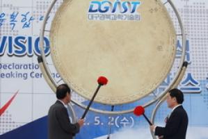DGIST가 세계 초일류 융복합 연구중심대학, 세계를 이끌어 갈 선도대학으로의 힘찬 날개짓을 시작했다. 2일 ‘DGIST VISION 2020 선포식 및 학사캠퍼스 기공식’을 시작으로 DGIST(대구경북과학기술원, 총장 신성철)는 미래 과학기술 인재육성의 요람을 책임지고, 대한민국의 자랑, 세계속의 중심 대학으로 나아가기 위한 첫발을 내딛는다고 밝혔다.