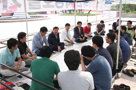 지난 24일 선출된 신임 이승천 민주통합당 대구시당위원장이 취임 후 첫 공식일정으로 대구MBC파업현장을 방문해 노조 관계자들과 간담회를 가졌다.