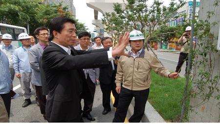 김범일 대구시장은 20일 도시철도 3호선 교각 미관개선 시험시공 구간을 방문해 준공 후의 경관을 미리 보고 개선 방안을 점검하고 현장 관계자를 격려했다. 도시철도건설본부는 2014년 완공 예정인 도시철도 3호선 노선을 따라 중앙분리대 녹지대의 아름다운 경관을 조성하기 위해 대봉교 동편에 다양한 미관개선(안)을 사전에 시험 시공했다. 앞으로 1년간 현장 모니터링을 통해 전문가와 시민들의 의견을 수렴할 계획이다. 이번 시험시공 구간은 많은 시민들이 준공 후 경관을 사전 조망할 수 있도록 유동 인구가 많고 현장 여건이 양호한 대봉교에서 동성초등학교 네거리까지 약 380m 구간으로 정했다. 미관개선(안)은 그동안 전문가와 시민들이 제안한 아이디어를 대상으로 다양한 공법을 시도했다. 시청 및 본부 홈페이지를 통해 총 10여 개 업체로부터 참여 신청을 받아 2011. 11월에 시작해 올해 5월에 완료했다. 주요 시공 내용은 중앙분리대 화단조성과 교각 미관 개선 및 안전시설물을 설치한 것이다. 중앙분리대 화단조성은 약 300m 구간의(화단 폭 2.1m, 10개 구간) 교각 사이마다 각각 수목 종류를 달리 식재해 교각과 조화 여부, 계절별 변화추이, 식재수종의 현장 적응성 등을 관찰할 예정이다. 교각 미관 개선 및 안전시설물 설치는 교각 15개소를 대상으로 교각 코팅 4개소, 그래픽 3개소, 래핑 1개소, 피복 식물 4개소, 안전시설 3개소가 있다. 이 밖에 교각오염 방지용 알미늄 커버설치 1개소, 궤도빔 투명코팅 도포 1개소가 있다. 또 교각을 활용한 광고(홍보)판도 1개소 설치했다. 공사 기간 시험운영을 하면서 광고수익을 창출해 도시철도 운영 수지 개선에 활용할 수 있을지를 적극 검토할 예정이다. 시민 의견 수렴은 교각과 화단에 각각 설명 판을 설치하고 시험시공 구간 남쪽 한가람 아파트 앞 인도 변에 시민 의견함으로 의견을 수렴한다. 또 시, 본부, 3호선이 지나는 구청 홈페이지에 시공 설명과 함께 인터넷으로도 의견을 받아 3호선 전 구간의 미관개선에 반영할 계획이다. 김범일 대구시장은 “3호선 준공 후 도로경관에 대해 사전 조망할 기회를 갖고 주변 환경과의 조화 여부, 미관개선 효과와 경제성, 구간별 적용방안 등을 종합적으로 파악하기 위한 시험시공 평가는 만족할 수준”이라며 “시민들이 많은 관심을 두고 시험 시공 현장을 보고 의견을 내 줄 것을 당부한다”고 말했다. <저작권자 ⓒ 브레이크뉴스 대구경북 무단전재 및 재배포 금지>