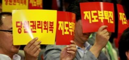 민주통합당 대선 후보를 경선이 열린 대구 엑스코 현장에서 지도부의 사퇴를 촉구하는 목소리가 터져 나왔다.