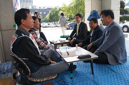 민주통합당 홍희락 의원이 19일 친환경의무급식주민조례 제정을 요구하며 시민단체들이 8일째 단식농성을 벌이고 있는 대구시의회를 찾아 이들을 격려하고 중앙당 차원의 지원방안 마련을 약속했다. 대구시민 3만여명이 서명해 발의된 친환경의무급식 지원 조례는 상위법 저촉과 집행부의 반대를 이유로 행정자치위원회가 수정한 ‘학교급식지원조례’가 심의 의결돼 20일 본회의에 상정될 예정이다. 시민단체들은 행자위 수정안이 ‘의무급식’의 시대적 의미를 퇴색시키고 지원을 임의규정으로 정해 사실상 의무급식을 무위로 돌리는 것이라며 ‘지원할 수 있다’라는 규정을 ‘지원한다’라는 강제규정을 삽입한 수정안을 대구시의회에 제안한 상태이지만 받아들여질 가능성은 없는 상태다. 홍희락 의원은 대구가 16개 광역시도 가운데 유일한 무상급식 불모지라는 점을 강조하며 대구시의회 의원들에 대한 자신의 생각을 밝혔다. 홍 의원은 “시의원 33명 중 그중에서 당의 입장을 떠나서 몇 명이라도 애들을 생각하고 시민들을 생각하면 반대토론이라도 할 수 있을텐데 전혀 없다는 것은 도대체 이해할 수 없다”면서 “그 정도로 폐쇄적이고 일방적인 사고를 가진 시의원들이 있다는 게 이해가 안된다”고 지적했다. <저작권자 ⓒ 브레이크뉴스 대구경북 무단전재 및 재배포 금지>