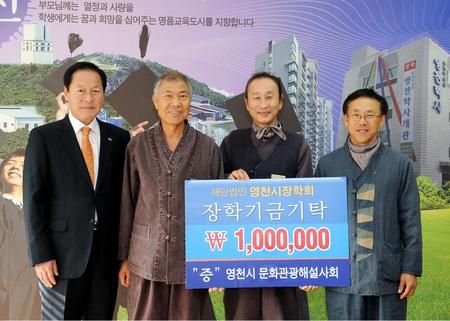 영천시 문화관광해설사회는 영천을 찾는 관광객들에게 지역의 주요 관광명소 및 문화유적 소개하며 지역 알림이 역할을 톡톡히 하고 있다. 2009년부터 매년 장학기금을 기탁해오고 있으며 김종식 회장은 “학생들에게 우리지역의 소중한 문화재를 가깝고 친근하게 느낄 수 있도록 널리 알려주고 싶고 지역을 아끼고 자랑스러워하는 훌륭한 인재로 커나가길 바란다.”고 전했다. 김영석 이사장은 “소중한 장학기금 기탁에 진심으로 감사를 드리며 지역을 아끼고 사랑하는 여러분들의 기탁 열기가 지역교육발전의 촉진제가 되고 있다. 안심하고 교육시킬 수 있는 교육환경을 만들기 위해 최선의 노력을 다하겠다.”고 말했다.