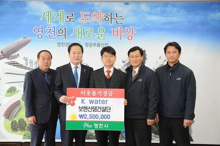 영천농협직장협의회(회장 이광국)가 1백89만원 상당의 백미(10kg) 70포를 이웃돕기 성품으로 영천시에 기탁했다. 영천농협직장협의회는 조합원이 일년간 모은 회비를 백미로 바꿔 매년 연말 불우이웃돕기 성품으로 기탁하고 있다. 금복주복지재단(회장 김동구)도 500만원 상당의 백미(20kg) 100포를 영천시에 기탁했다. 또한 한국수자원공사 경북지역본부 보현산댐건설단(단장 김봉재)이 250만원 상당의 어르신을 위한 내의 100벌과 라면 22박스를 이웃돕기 성품으로 기탁해 이웃사랑 실천에 동참했다. 기관단체 뿐 아니라 영천시 민원과 공무원도 새해 첫날 성금 50만원을 기탁했다. 성금은 2012년 경상북도 시‧군별 토지행정 추진실적 종합평가에서 지적민원현장방문제 운영과 지적재조사사업 등 미공부 정리 공공용지를 조사해 지적공부를 정리해 토지관리의 효율성을 높인데 대해 토지행정 종합평가에서 우수상으로 받은 상금 중 일부이기에 더욱더 의미가 있다. 한편 영천시는 지난해 말까지 자체 목표액을 초과해 417백만원(현물 지정기탁 제외)의 성금을 모금했다. 김영석 영천시장은 “지금까지 성금을 기탁해 준 모든 분에게 감사의 인사를 드리며 오는 1월 31까지 계속되는 성금모금 캠페인에 더 많은 시민이 참여해 우리 주위의 어려운 이웃에게 따뜻한 정이 골고루 전해질 수 있기를 바란다.”고 전했다. <저작권자 ⓒ 브레이크뉴스 대구경북 무단전재 및 재배포 금지>
