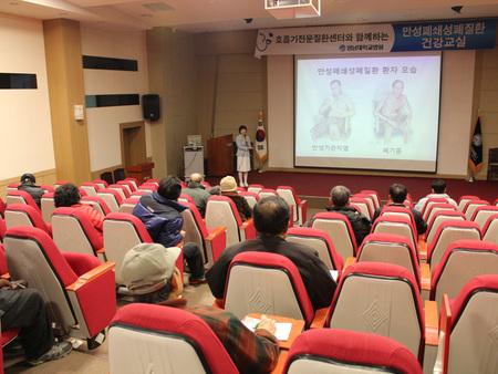 지난 7일 ‘결핵 개요 및 진단’을 주제로 한 결핵교실에 이어 14일 ‘만성폐쇄성폐질환 산소 치료와 호흡 재활’을 주제로 한 만성폐쇄성폐질환교실이 병원 1층 이산대강당에서 열렸다. 이날 강좌에는 많은 지역민 및 환자 보호자들이 참석해 높은 관심을 보였고, 강좌 후 별도의 질의.응답 시간을 통해 만성폐쇄성폐질환에 대한 궁금증 해소에 도움을 줬다. 또한 18일은 ‘폐암 진단과 치료 및 예방’을 주제로 한 폐암교실, 28일은 병원에서 외래 진료를 받거나 입원 중인 호흡기 질환 환자를 대상으로 하는 만성폐쇄성폐질환 & 천식 교육이 실시된다. 각 교실 개최시간은 오후 2시, 장소는 병원 1층 이산대강당이다. 단 28일 만성폐쇄성폐질환 & 천식 교육은 오전 11시 서관 3층 회의실에서 열린다. 환자와 보호자, 관련 질환이 의심되는 분, 관심 있는 일반인은 누구든지 무료로 강의를 들을 수 있다. 강연 이후에는 질의.응답 시간도 가진다. 보다 자세한 문의는 기획조정처 홍보협력팀(☎ 620-4413) <저작권자 ⓒ 브레이크뉴스 대구경북 무단전재 및 재배포 금지>