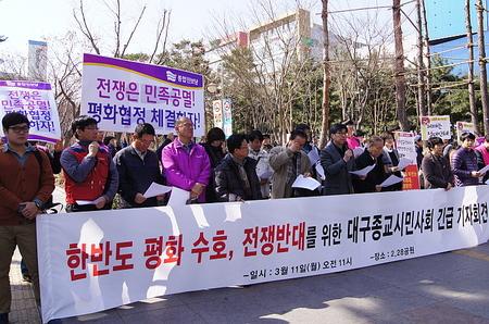 이들은 “북은 3월 11일부터 정전협정의 모든 효력을 백지화 할 것을 공언하였고 이에 남도 강경 군사대응을 공언하여 이제 한반도에서 언제 어디서 전쟁이 발발할지 모르는 상황”이라며 “한반도 평화를 위해 전쟁을 위한 군사훈련을 시작하지 말고 평화협정을 체결해야 한다”고 주장했다. 북한은 UN이 3차 핵실험 제재안을 결의하자 정전협정 파기, 남북불가침협정 무효화는 물론 핵전쟁을 위협하는 등 한반도 정세를 연일 긴장시키고 있다. 북한은 이어 통상적 군사훈련인 독수리연습과 키리졸브연습에 대해서도 강한 비판을 쏟아내고 있다. 통합진보당을 포함한 진보진영은 키 리졸브 훈련이 시행되면 북한은 정전협정과 남북불가침 조약을 파기하고 훈련을 선전포고로 인식할 것이라는 논리를 앞세우며 ‘전쟁 반대, 한반도 평화수호 결의대회’를 개최하는 등 목소리를 높이고 있다. 통합진보당 경북도당도 이날 오전 11시 대구 중구 2.28기념중앙공원에서 기자회견을 개최하고 “(북한이)정전협정을 폐기한다는 것은 전쟁을 억제하던 최소한의 조치가 없어진다는 뜻이며 사소한 군사적 충돌이 발생한다면 한반도는 걷잡을 수 없는 전쟁터가 될 수도 있다”면서 “박근혜 정부는 즉각 대북특사를 파견하고 한반도 평화프로세스를 가동하는 한편 키리졸브-독수리 군사훈련을 즉각 중지해야 한다”고 주장했다. 하지만 온라인상에서는 통진당을 포함한 진보진영의 주장에 대한 비판적 글이 많다. ‘종북 세력들이 드디어 본색을 드러냈다’, ‘이적 정당 종북 통진당 해산’등의 글이 올라오는 한편 군사훈련조차 평화 운운하며 중지하라고 하면서도 북한의 핵실험이나 전면전 협박에 대해 단 한마디도 언급하지 않고 있다는 비난도 많다. 한편 국군 1만여 명과 미군 3,500여 명이 참여하는 이번 키 리졸브 연습은 워게임과 실기동 훈련을 제외한 지휘소 중심의 훈련이 이뤄진다. 특히 2015년 12월 전시작전통제권 전환을 앞두고 우리 합동참모본부가 주관하고 미군은 지원하는 형식으로 진행한다. 이와 별도로 양국은 이달 초 시작한 독수리 연습을 다음 달 말까지 진행한다. 한국군 20만여 명과 미군 1만여 명이 참여해 상륙훈련과 지상기동, 공중, 해상, 특수작전 중심의 실기동 연합훈련을 벌인다. 미군 이지스 구축함 2척을 포함해 F-22 스텔스 전투기와 B-52 폭격기, 핵추진 잠수함 등이 참여할 예정이다. <저작권자 ⓒ 브레이크뉴스 대구경북 무단전재 및 재배포 금지>