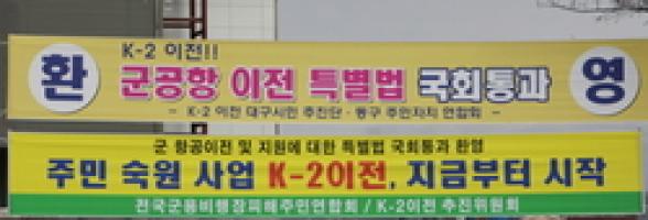 K-2 이전 특별법의 국회통과를 자축하기 위한 대구시민 보고대회가 14일 대구 동구 팔공로 소재 한국폴리텍대학 섬유패션캠퍼스에서 실시됐다.