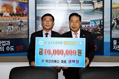 권택형 대표는 “청소년들이 인성을 갖춘 글로벌 리더의 꿈을 갖도록 하는데 힘을 보태고 싶다”고 말했다. 주)덕산지에스는 상주시 헌신동 외답농공단지내에서 친환경식생호안블록, 옹벽블록, 수로관 등을 생산하며, 특허 빗물저류조는 도심 침수피해를 예방하는 등 친환경 우수기업이다. 또한 중소기업중앙회가 후원하는 ‘2012 중소기업 경영대상’에서 미래경영부분 대상을 수상했으며 제47회 납세자의날(2013.3.3)에는 성실납세에 기여한 공로로 대구지방국세청장상을 수상했다. 성백영 상주시장학회 이사장은 "지역인재육성에 지역의 각계각층에서 관심을 가져주고 있는 것에 감사하며, 이러한 노력이 글로벌 인재육성과 지역발전으로 이어질 것으로 확신한다"고 말했다. <저작권자 ⓒ 브레이크뉴스 대구경북 무단전재 및 재배포 금지>