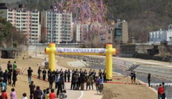 | ▲ 동화천 생태하천 준공을 자축하는 이재만 동구청장 | |