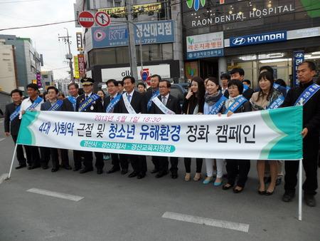이날 캠페인은 각 기관장을 비롯해 소속직원 및 유관단체 150여명이 참석해, 지역 주민을 상대로 4대 사회악 척결을 위한 분위기 조성을 위해 마련됐다. 또한 최근 사회문제화 되고 있는 학교폭력 예방과 근절을 위해 지난 달 22일부터 오는 5월24일까지를 학교주변 청소년 유해환경에 대한 민관합동 특별 지도․단속 기간으로 운영하며 이에 대한 홍보도 이뤄졌다. 최영조 경산시장은 “지속적인 홍보․계도 활동을 통해 4대악 근절 분위기를 조성해 나갈 계획이며 안전한 학교주변 환경 조성에 지역주민들이 적극동참해 줄 것“을 당부했다. <저작권자 ⓒ 브레이크뉴스 대구경북 무단전재 및 재배포 금지>