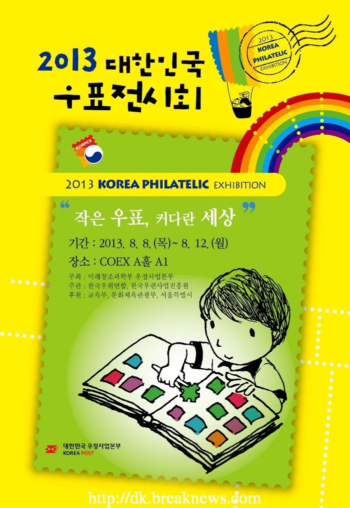 우표의 문화적 가치를 재발견하고 작은 우표 속 커다란 세상과 만나는 우표전시회가 개막됐다. 경북지방우정청(청장 정진용)이 우정사업본부 주관으로 개최되고 있는 ‘2013 대한민국 우표전시회’가 8일~12일까지 5일간 서울 코엑스(COEX) A홀에서 열리고 있다고 밝혔다.