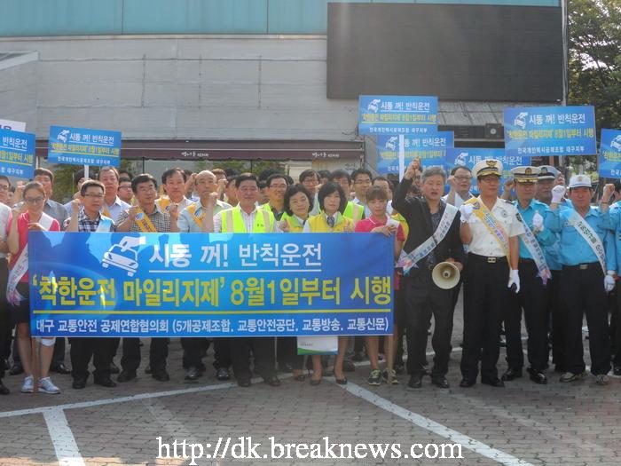 특별교통안전 캠페인은 정부의 교통사고 사망자 30% 줄이기 국정목표 달성과, 착한운전 마일리지제 대국민 홍보 및 국민의 교통안전에 대한 의식 개선을 위해 실시됐다. 착한운전 마일지제는 1일부터 운전면허가 있는 운전자가 서약서를 작성해 경찰서 민원실, 지구대 파출소에 제출하면, 1년간 무위반·무사고를 실천할 경우 운전면허 특혜점수 10점을 받게 되는 제도이다. 부여된 점수는 기간에 관계없이 누적 관리되며, 그 운전자가 교통사고 등으로 운전면허 정지처분을 받게 될 경우 10점당 10일씩 처분일수에서 감경받게 된다. <저작권자 ⓒ 브레이크뉴스 대구경북 무단전재 및 재배포 금지>
