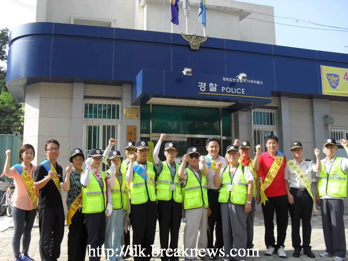 김천경찰서(서장 백동흠)사 관내 초등학교 여름방학기간 중 총 2회(9일, 20일)에 걸쳐 김천시 김천역 부근 일대와 부곡동 맛고을 일대에서 아동안전지킴이와 함께 ‘비행청소년 및학교폭력 예방을 위한 캠페인‘을 실시했다. 지난 20일 실시된 캠페인에는 서부파출소 소속 아동안전지킴이 10명과 경찰관들이 협력으로, 지역 내 부곡맛고을·부곡공원 주변·김천고등학교 일대를 순찰했다. 또 지난 9일 실시된 캠페인에서는 역전파출소 소속 아동안전지킴이 8명과 경찰관들이 함께 지역 내 김천역·평화시장 주변·김천시립도서관 일대를 순찰했다.