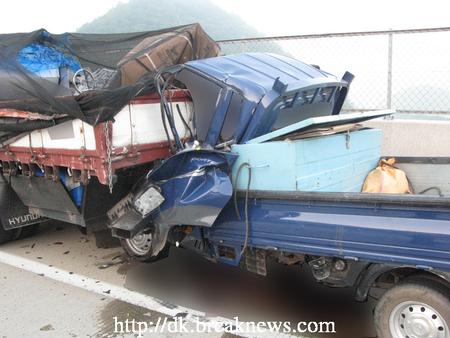 고속도로 순찰대에 따르면 사고는 1톤 포터 차량과 4.5톤 초장축카고트럭이 중부내륙고속도로 하행선 양평방면에서 창원방면 1차로로 각 운행 중 이었으며, 사고지점에 이르러 1차로로 운행 중이던 1톤 차량이 원인을 알 수 없는 이유로 4.5톤 초장축카고트럭을 뒤에서 추돌하면서 사고가 발생했다. 이 사고로 1톤 차량 운전자 박씨와 함께 조수석에 탑승 중이던 이씨가 사망했으며, 현재 정확한 사고 경위는 조사 중이다.