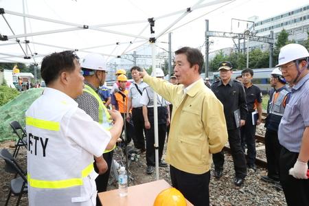 김범일 대구시장은 31일 오전에 발생한 대구역 열차 추돌 사고 현장을 방문해 현장 상황을 둘러보고 열차 이용객과 시민불편을 최소화하기 위한 특별 교통대책 마련을 지시했다.