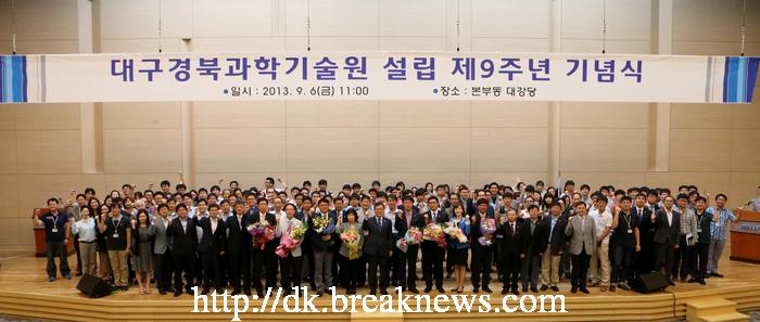 설립 9주년을 맞은 DGIST(대구경북과학기술원, 총장 신성철)가 6일 오전 본부동 대강당에서 전 임직원이 참여한 가운데 ‘DGIST 설립 9주년 기념식’을 개최했다. 지식창조형 글로벌 인재 양성과 미래 융복합 기술 창출을 통한 ‘세계 초일류 융복합 연구중심대학’의 비전을 선포한 DGIST신성철 총장은 이날 “과학기술계 인사들이 DGIST의 빠른 발전 속도에 관심을 가지며 이공계 연구중심대학의 새로운 변화를 가져올 혁신적 기관으로서 주목하고 있다”며 “DGIST가 대구경북 지역과 국가에 기여할 수 있도록 더 큰 열정을 보여 달라”고 당부했다.