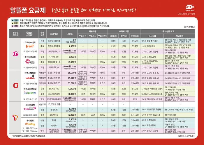 우체국 알뜰폰 27일부터 판매 개시월 평균 30% 요금 저렴 기종은 피쳐폰부터 17종 선택 폭 넓지는 않아