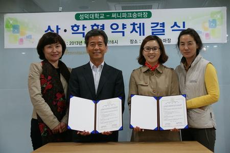 성덕대학교(총장 윤지현)와 성덕재활승마센터(센터장 이인실)가 경북 칠곡군에 위치한 써니파크승마장(대표 한상우, 원장 박선희)에서 지난 23일 산·학 협약 체결식을 가졌다.