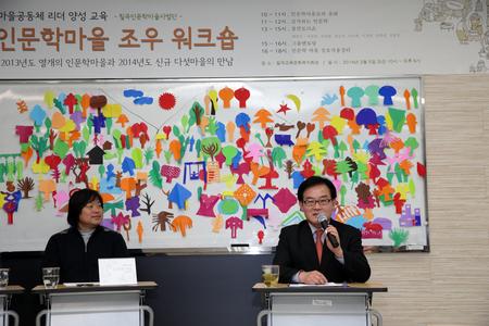 이 날 워크숍은 지난 1년간 칠곡군이 추진해온 인문학사업과 열 개 마을 주민들이 추진해왔던 마을사업들을 소개됐으며, 기존의 마을리더와 새롭게 참가한 마을 리더들이 상호 학습하는 프로그램으로 진행됐다. 한편 왜관읍 금남2리, 매원2리, 북삼읍 숭오2리, 어로1리, 휴먼시아아파트, 석적읍 부영아파트, 지천면 영오1리, 가산면 학산1리, 학상리, 약목면 남계3리로 이뤄진 열개의 기존 인문학 마을은 생활인문학이라는 목표로 주민 스스로 요리를 가르치고 배우고, 엄마가 교사가 되어, 마을의 축제를 치러내면서 겪었던 마을의 이야기에 대한 노하우를 새로운 7개 마을에 설명했다. 아울러 새롭게 참가한 왜관읍 대동다숲아파트, 북삼읍 화성파크아파트, 숭오3리, 석적읍 동화아파트, 한솔아파트, 지천면 달서리, 기산면 영2리 마을은 인문학 사업에 대한 이해와 공감으로 마을만들기에 대한 의지를 다지는 계기가 됐다. 또한 이 날 워크숍에는 전국적인 인문학 전문가들이 멘토로 참가, 마을별 특성에 맞게 토론과 컨설팅을 통한 토크쇼, 마을의 문화를 창조하기 위한 상호작용 프로그램도 진행, 함께 발전하는 인문학마을의 성장 비젼을 공유했다.