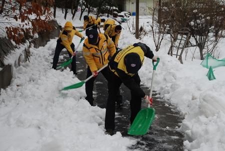 한전 대구경북본부(본부장 박원형)가 2월 13일 포항시 남구 대이동 일대에서 본부 119 재난구조단원과 본부 및 포항지사, 포항전력지사 사회봉사단원 등 50여명이 참석한 가운데 대설피해 복구지원 활동을 실시했다. 이날 복구지원활동은 5일 연속 내린 폭설로 고립된 마을과 시민들의 통행에 지장을 주는 도로 등의 제설작업이 진행됐다.