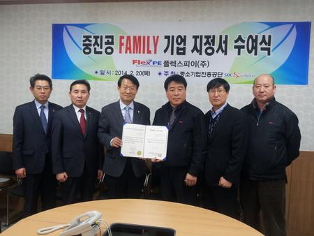 중소기업진흥공단 중남부권광역본부(장덕복 광역본부장)와 대구지역본부(이한철 본부장)가 지난 20일 대구 달성군 다사읍에 위치한 플렉스피이(주)(대표이사 어온석)에서 중진공 패밀리기업 지정서 수여식을 가졌다.