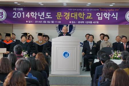 문경대학교(총장 신영국)가 2014학년도 입학식을 지난 3일 문경대학교 강당에서 각급 기관단체장과 보직교수, 학과장, 교수, 입학생 등 500여명이 참석한 가운데 실시했다.