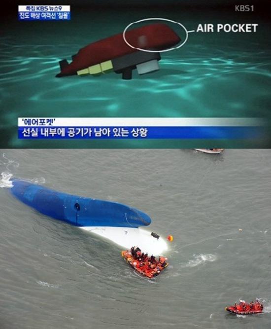 | ▲ 세월호 침몰 사고 에어포켓 <사진=KBS1 뉴스 캡처/해양경찰청 제공> |