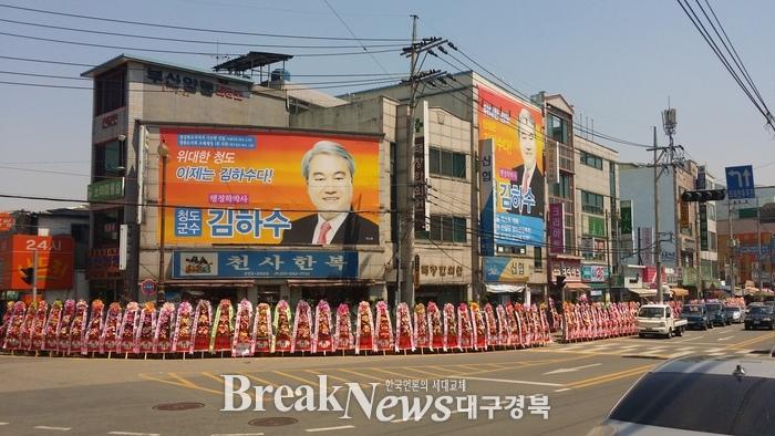 오뚜기 김하수 청도군수 예비후보는 농산물 최저가 보상제 도입과 광역권 전철망 청도 연장 추진, 그리고 새마을의 고장 청도에서 새마을 엑스포를 개최하겠다는 공약을 내걸었다.