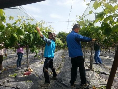 이에 상주시농업기술센터는 지난 27일 화동면직원과 농협, 화동향우회, 파출소, 예비군면대 등과 함께 화동면 일원에서 일손부족으로 어려움을 겪고 있는 농가의 포도과원(3,620㎡)에서 농촌일손돕기 봉사활동을 실시했다. 같은 날 외남면에서도 기획예산담당관실 직원과 남상주농협외남지점 직원 등 35명이 외남면 흔평리 소재 김정태 포도과원에서 포도순따기 작업을 지원했다.