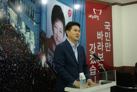 새누리당 당권 도전에 나선 김태호 의원이 25일 대구를 방문해 기자회견을 열고 당권 도전 배경 및 국정현안에 대한 자신의 소신을 피력했다. 김 의원은 작심한 듯 기자들의 질문에 거침없는 답변을 쏟아내 주목받았다. 김 의원은 이날 오전 11시 새누리당 대구시당 3층 회의실에서 열린 기자회견에서 김 의원은 “"6.4지방선거를 통해 새누리당은 국민에게 경고장을 받은 것”이라면서 “국민의 요구를 받들어 당을 혁신적으로 변화시켜야 하고 (제가) 당선이 되면 그런 방향을 모색할 것”이라고 밝혔다. 김 의원은 또한 “박근혜 대통령이 밝힌 국가 개조의 중심에는 새누리당이 앞장서야 한다”면서 “당ㆍ청이 긴밀히 협력해 국가개조를 해나가는데 존재감 있는 리더십이 필요하다.(당대표가 되면)박 대통령과 언제든지 대화할 수 있도록 핫라인을 개설하겠다”고 말했다. 김 의원은 최근 서청원 의원과 김무성 의원 간 대립이 격화되고 잇는 상황과 관련해 “전당대회를 앞두고 치열한 네거티브 전략으로 서로 맞서는 이전투구식 양상은 민심을 떨어뜨리는 행위”라며 “계파 뒤에서 기득권 유지를 위해 승리만을 내세우는 것이 바로 구태정치”라고 비판했다. 김 의원은 24일 문창극 총리후보자가 사퇴와 관련해 김기춘 비서실장의 책임론을 분명히 했다. 김 의원은 “반복되는 후보자 사퇴로 인해 책임으로 부터 자유로울 수는 없다”며 “아프지만 판단은 스스로 알아서 하실 것"이라고 말했다. 김 의원은 지역 현안과 관련해 TK지역이 역대 대통령을 많이 배출하고도 국비지원 사업이 취약하고 남부권 신공항문제가 제대로 이뤄지지 못한 상황을 ‘안타깝다’로 표현하고 “ 부권 신공항문제는 국가 경쟁력 차원에서 세계적 전문가를 초청해 입지를 과학적으로 검증하되 5개 시.도 단체장이 결과에 따른다는 협의가 우선되어야 할 것”이라고 지적했다. <저작권자 ⓒ 브레이크뉴스 대구경북 무단전재 및 재배포 금지>