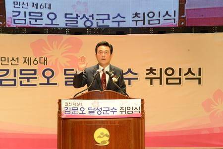 김문오 달성군수가 1일 취임식과 함께 민선6기 출범을 정식으로 알렸다. 김문오 군수는 취임식에 앞서 충혼탑을 참배한 후 취임식장인 군청 대강당으로 이동한 뒤 취임사를 통해“중단없는 군정 추진으로 대구의 뿌리이자 모태인 달성의 긍지와 자긍심을 지키고, 행복한 달성, 꿈이 이루어지는 희망찬 달성을 만들기 위해 노력하겠다”고 각오를 밝혔다. 이를 위해 민선 6기 군정 슬로건을 ‘대구의 뿌리, 달성 꽃피다’로 정하고 △활력 있는 창조경제 육성 △행복한 복지·교육 구현 △품격 높은 문화·관광 △안전한 도시기반 조성 △쾌적한 생태환경 조성 등 5대 군정 운영 방향도 제시하면서 “달성을 행복 1등 도시로 만들어 나가겠다”고 강조했다. <저작권자 ⓒ 브레이크뉴스 대구경북 무단전재 및 재배포 금지>