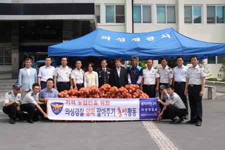 의성경찰서(서장 김용현)가 최근 양파가격 하락으로 눈물 짖는 양파 재배농민들의 농심을 달래기 위해 양파 팔아주기 홍익활동을 실시했다.