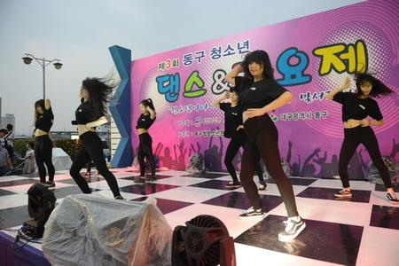 대구 동구청소년들의 끼와 재치를 발산하는 무대인 '제3회 청소년 댄스&가요제'가 동대구역 광장에 마련된 특설무대서 열렸다. 이 행사에는 지난 26일 예선에 지원한 댄스 30팀, 가요 50팀 가운데 댄스7팀, 가요 7팀이 결선무대에 올랐다. 결선 무대에서 가요 대상은 카멜레타운(고교연합팀)이, 댄스 대상은 혜화여고 익스프레션이 수상했다.