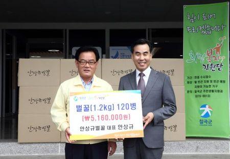 추석명절을 앞두고 8월 21일 (주)안상규 벌꿀의 안상규 대표가 관내 복지사각지대에 있는 아동세대와 홀몸 어르신들에게 전달해 달라며 500만원 상당의 벌꿀 120병을 희망복지지원단(단장 배상수)에 전달했다.